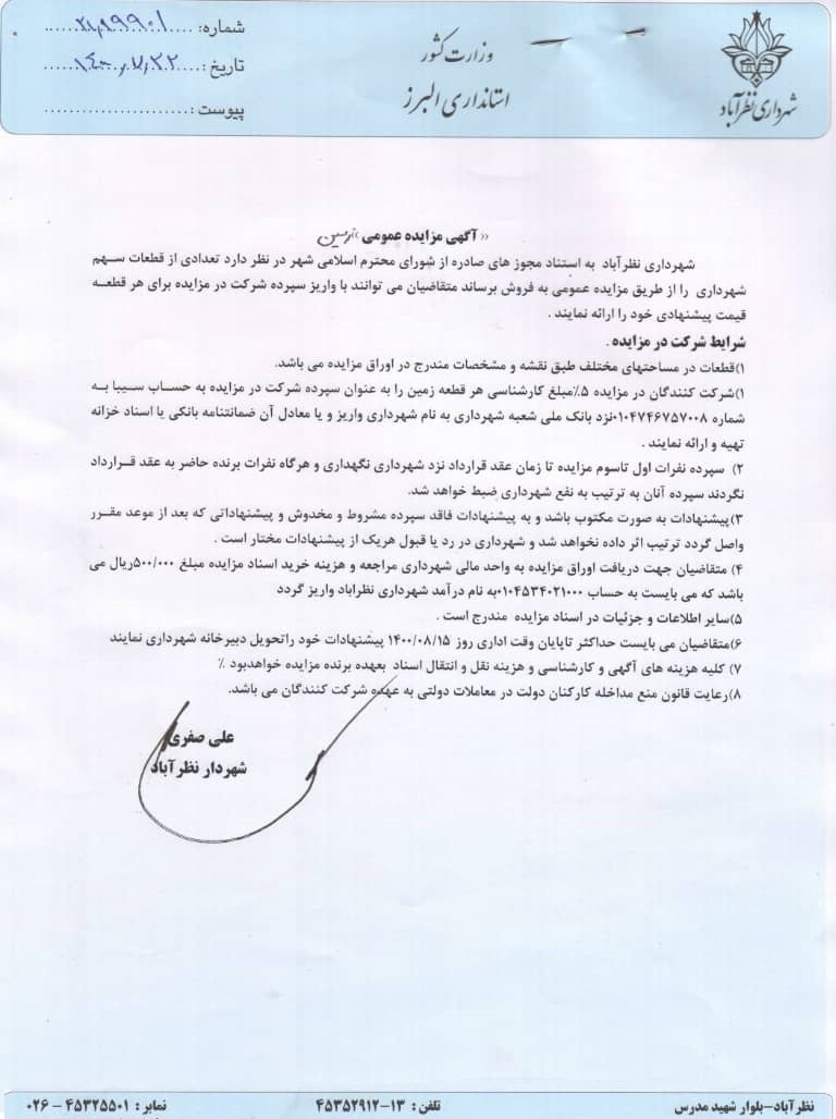 مزایده عمومی قطعات سهم شهرداری
